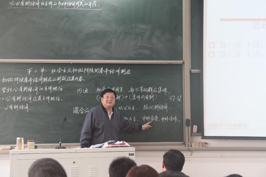 第一讲蔡晓辉老师以社会主义初级阶段的经济制度为主讲内容,蔡老师深入浅出地解析了社会主义初级阶段经济制度的形成过程以及当前经济制度的实质和核心,博得全场教师和学生的喝彩。第二讲高峰老师以洋务运动为主讲内容,高老师言简意赅地描述了洋务运动的发展过程,利用多年的教学经验,以人物为线索讲解洋务运动,别出心裁,激发起了在场老师和学生的兴趣。