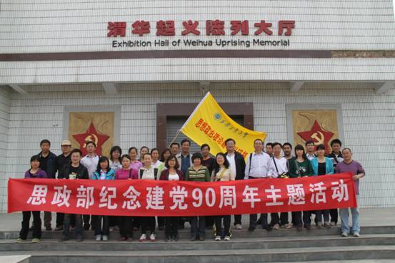 为庆祝中国共产党成立90周年,切实贯彻落实科学发展观,深入推进创优争先活动,引导思政部全体教师学习优秀共产党员的先进事迹和模范言行,继承发扬党的优良传统,进一步提高部门全体教师的思想政治素养和职业道德素质,激发全体教师投身部门发展的热情,2011年5月15日,思政部直属党支部组织部门全体教师赴渭华起义纪念馆进行参观学习。17直播