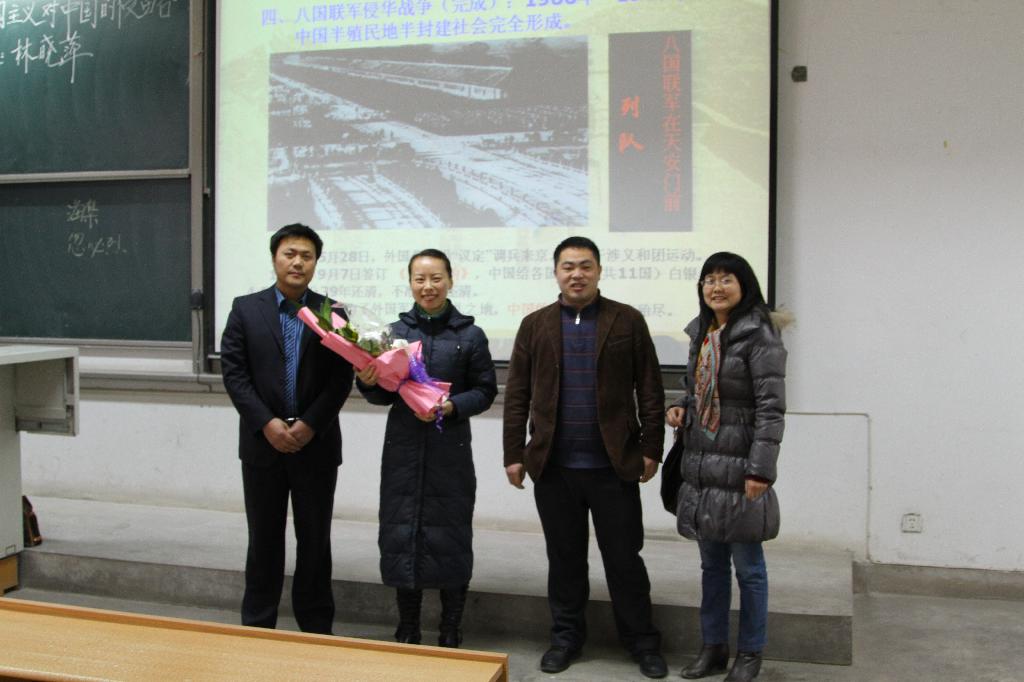2012年3月8日星期四,思政部工会为了庆祝第102个“三八”妇女节的到来,开展了“喜迎‘三八’妇女节、慰问一线女教师”的特色活动。此次活动由思政部工会牵头,得到了部党政领导的大力支持,由思政部工会主席、女工委员、男教师代表、教学秘书四人组成慰问小组,慰问“三八”节当天在一线授课的思政部女教师,为其送去鲜花一束,送去“三八节”全体教师由衷的祝福,鲜花代表着美丽,象征着女教师永远年轻漂亮!这次活动得到了教师的认可和好评,一线教师也感受到了组织的关注与温暖,活动取得预期的效果。