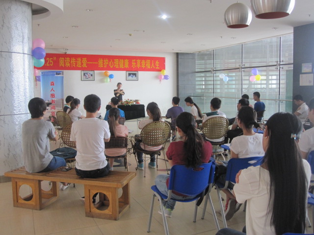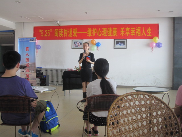 2015年“5.25”真人图书暨“我爱我”心理图书推介会在未央校区图书馆成功举办。本次活动以“阅读传递爱——维护心理健康 乐享幸福人生”为主题,由思政部心理健康教育中心和图书馆流通阅览部联合主办,旨在通过“真人阅览”和“纸质阅览”相结合的方式呼吁大学生关爱自我的心理成长和健康发展,点燃阅读的热情,享受学习的快乐,打造书香校园,滋养幸福心灵。