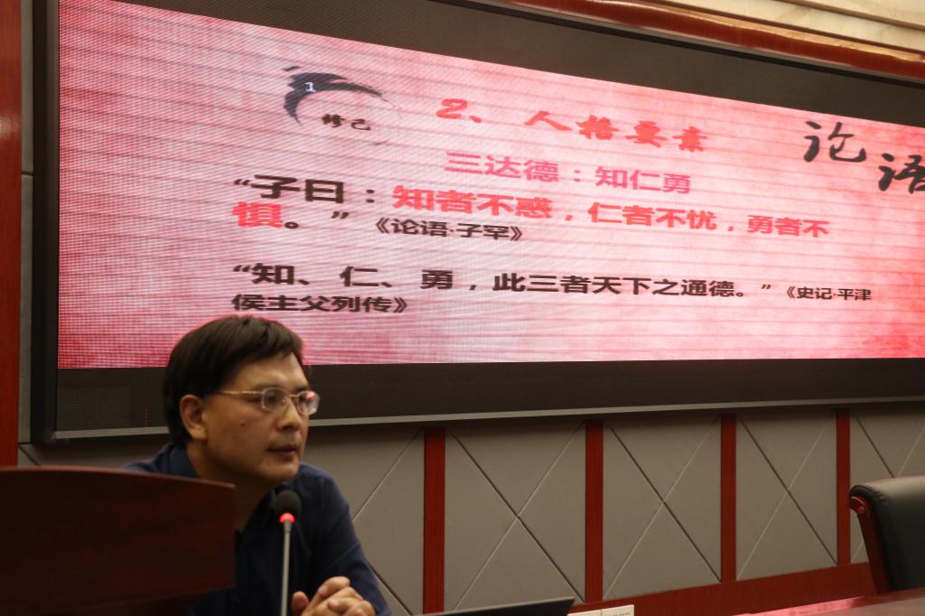 陆卫明教授讲座内容从“修己、孝悌、处世、交友”四个方面深入浅出的为学员解读了《论语》中蕴含的为人之道,整场讲座理论深刻、内容丰富,在场学生深受教育和启发。