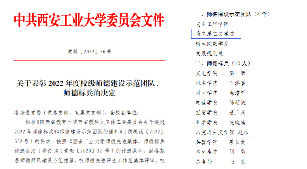 荣获“师德建设示范团队”称号,赵东副教授荣获“师德标兵”称号。