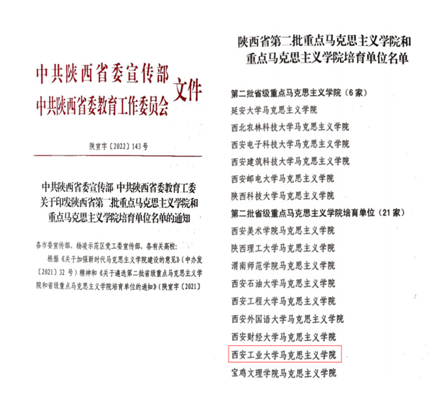 建设。围绕思想政治理论课教学、马克思主义理论学科建设、教师队伍建设等方面常抓不懈。思政课教学注重打造精品课堂,获得省级一流课程建设的突破。学校连续三年获得陕西省思政课大练兵活动优秀组织奖。国家社会科学基金重点项目和“新时代陕西高校红色文化育人体系创新研究基地”的获批,均实现零的突破。校内转岗与校外招聘同向发力,思政课教师队伍空前壮大。