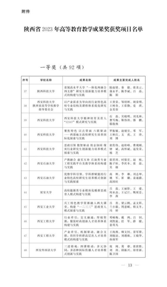 近日,陕西省2023年高等教育教学成果奖获奖项目公布,17直播