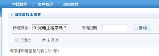 点击页面上方菜单 “培养管理”-点击左侧“调停课院系审核”