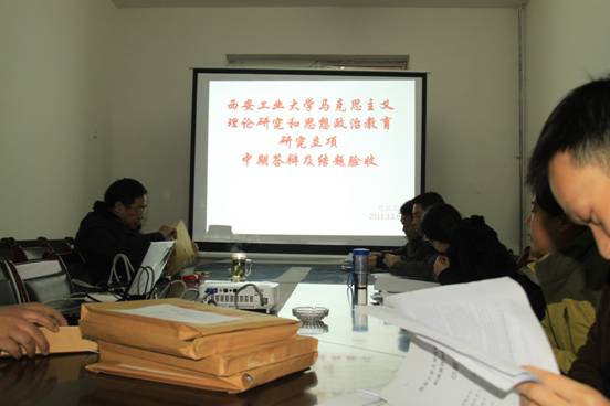 2011年12月6日,在思政部多功能室,思政部学术委员会,对2010年立项研究的“马克思主义理论和思想政治教育研究”课题进行了结题验收,并对重点课题进行了中期检查。各项目负责人通过课题陈述、相关资料展示等方式对项目完成情况进行了认真汇报。项目评审验收小组对项目的开展情况、创新点等方面进行质询,并就项目研究中存在的不足提出了指导性建议。答辩会由思政部学术委员会副主任田亮教授主持。最终有8项课题顺利结题,一项课题通过中期检查。