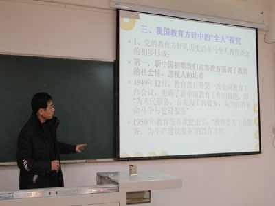 思政部教学、科研水平的进一步提高,展示教师在学术领域的精彩学术观点,思政部特举办 “精彩学术观”学术大讲堂。12月16日,大讲堂第三讲在金花校区6-206教室开讲,由田亮教授主讲题为“全人—高等教育的终极目标”学术报告,思政部全体教师及研究生参加了此次活动。
