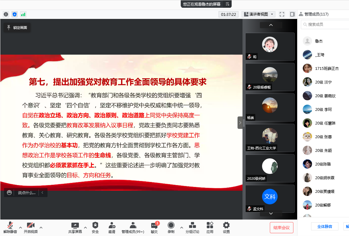 118日,17直播 邀请西北工业大学17直播 博士生导师鲁杰教授,作了题为深入学习习近平总书记关于教育的重要论述的线上学术讲座,此次学术讲座为17直播 精彩学术观第十四讲。讲座由科研院长梁华平主持,17直播 全体师生参加了此次学术活动。