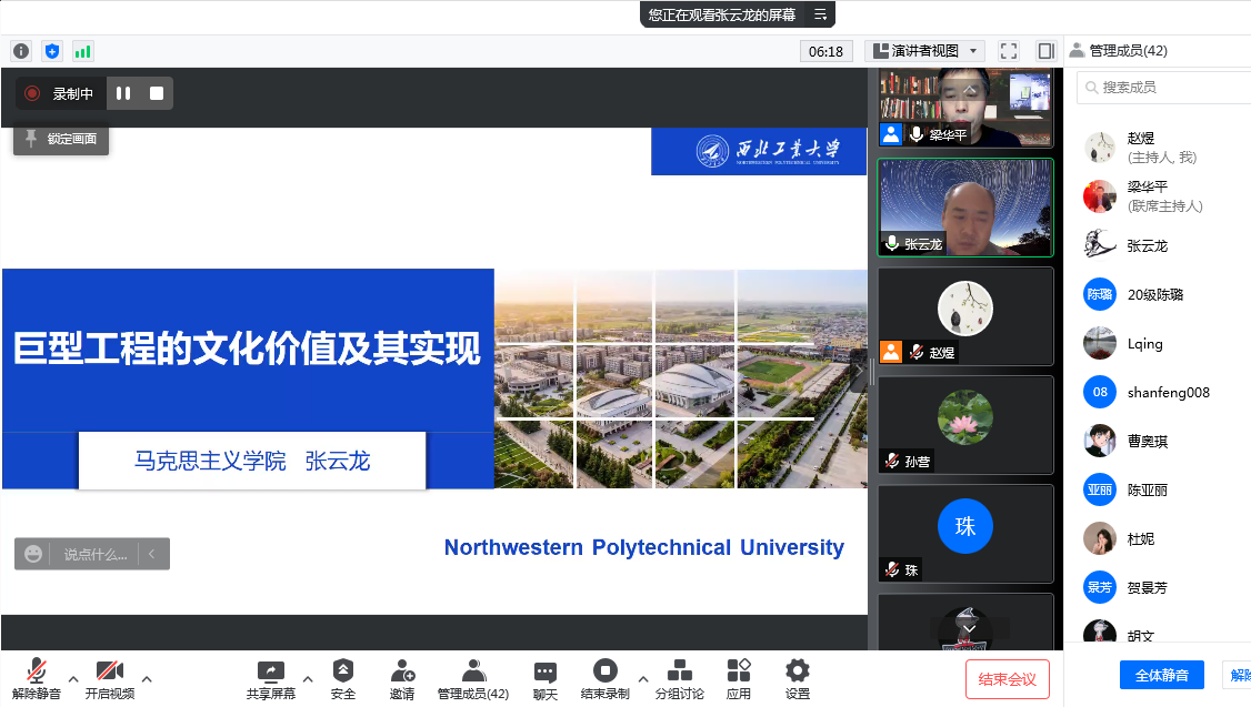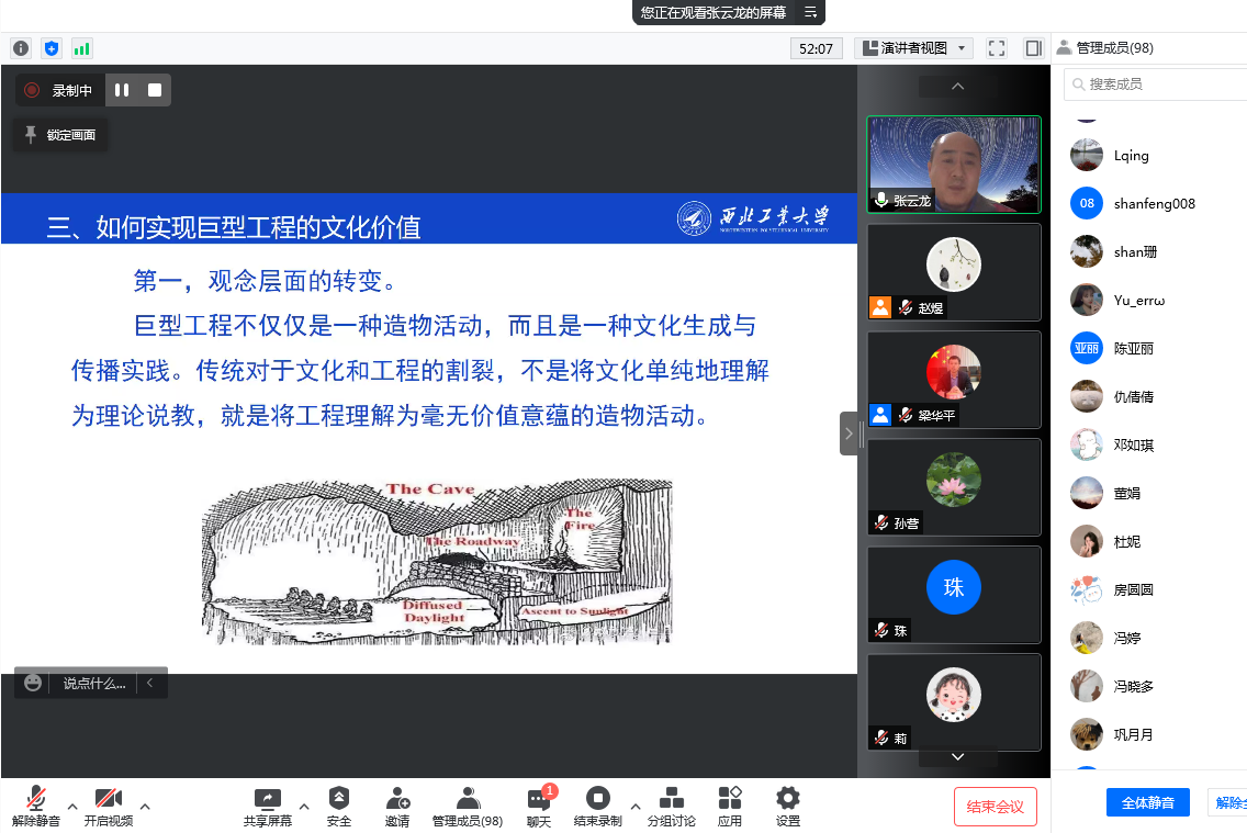 327日,17直播 邀请西北工业大学17直播 副院长张云龙教授,在线上腾讯会议平台为17直播 全体师生做了题为“巨型工程的文化价值及其实现”的学术讲座,此次为17直播 “精彩学术观”系列学术讲座第十五讲。讲座由副院长梁华平主持,17直播 全体师生一百余人参加了此次学术活动。