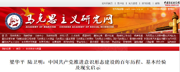梁华平副教授发表的科研论文《中国共产党推进意识形态建设的百年历程、基本经验及现实启示》被中国社会科学网全文转载,被《党的基层建设与思想政治工作成果汇编》(中共中央党校出版社,2021年)全文收录。