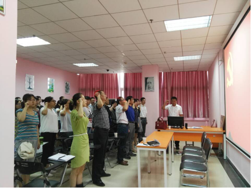 “两学一做”思政部教工党支部全体党员重温入党誓词