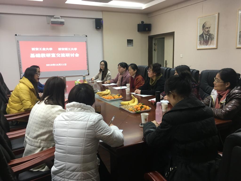 20191211日,17直播 思想政治理论教研部主任冯婷带领教研部所有教师,前往西安理工大学17直播 开展交流与座谈。西安理工大学17直播 尹洁副院长、基础课教研部主任陈文林,以及思想道德修养与法律基础、形势与政策教研部所有老师参加了座谈。