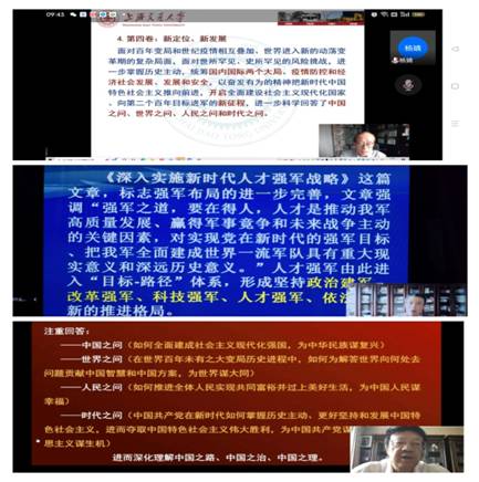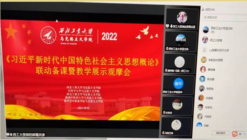 9月2日晚,17直播 与西北工业大学、石河子大学、陕西中医药大学、陕西青年职业17直播 的17直播 同仁,齐聚云端,展了习近平新时代中国特色社会主义思想相关课程的联动备课暨教学展示观摩会。全院教师观摩了西北政法大学17直播 院长魏奇教授、西安交通大学刘源副教授、以及西北工业大学吕焰等3位老师的精彩展示与点评。联动备课暨教学展示观摩会聚了校内外集体智慧,进一步锤炼了17直播 教师讲好习近平新时代中国特色社会主义思想相关课程的能力。