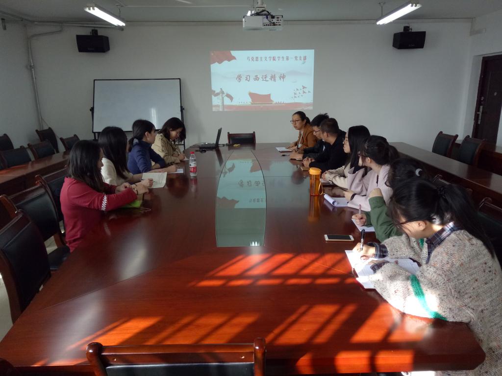学生第一党支部全体党员集体学习“西迁精神”。