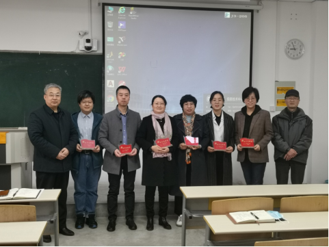 院长、党委副书记李晓彤同志向陈泊蓉、梁花、梁华平、孟燕、刘纪英、周意岷等六位同志一一颁发教学先锋岗和科研先锋岗标牌。
