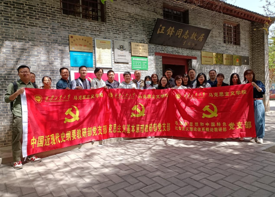 马克思主义基本原理教研部党支部、毛泽东思想和中国特色社会主义理论体系概论教研部党支部和中国近现代史纲要教研部党支部等三个支部联合进行了主题党日活动。三个支部的党员和入党积极分子共20余人前往汪锋同志故居开展“追忆红色历史,传承红色基因”主题党日活动。