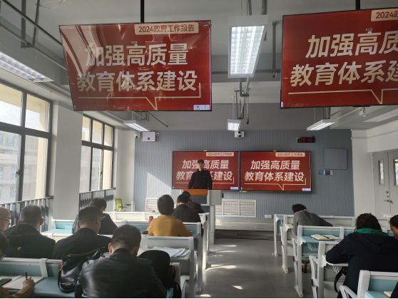 在教七楼416教室召开教职工集体理论学习会,学习传达2024年全国两会精神,重温习近平总书记在学校思想政治理论课教师座谈会上重要讲话等精神,学习《习近平新时代中国特色社会主义思想学习纲要(2023版)》部分内容。会议由党委书记杨灏主持。