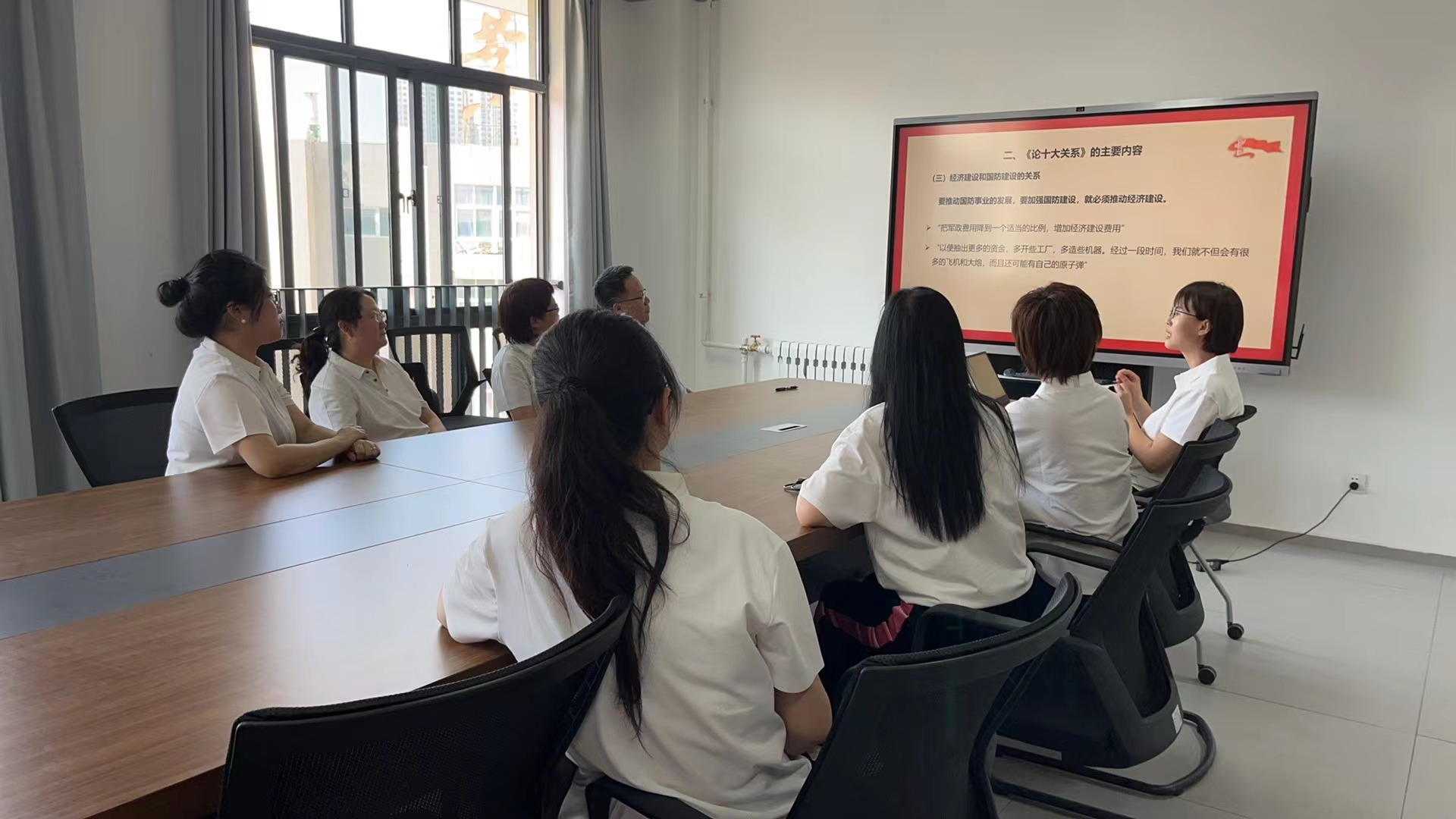 本次活动由支部党员陈莉向全体党员做《论十大关系》为主题的读书分享报告。陈莉通过习近平总书记2015年1月23日在十八届中央政治局第二十次集体学习时的讲话导入让支部成员了解到学习这篇经典讲话的重要性,本次学习交流从“《论十大关系》发表的时代背景”,“《论十大关系》的主要内容”,“《论十大关系》的重要意义和历史地位”三个方面展开。