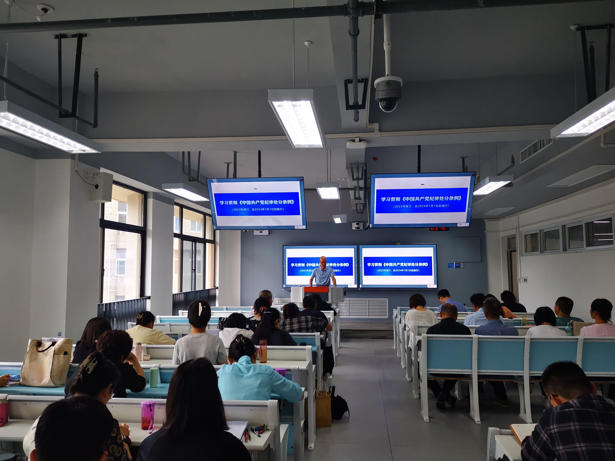 召开教工党员大会,开展党纪学习教育专题学习。会议由党委书记杨灏主持。