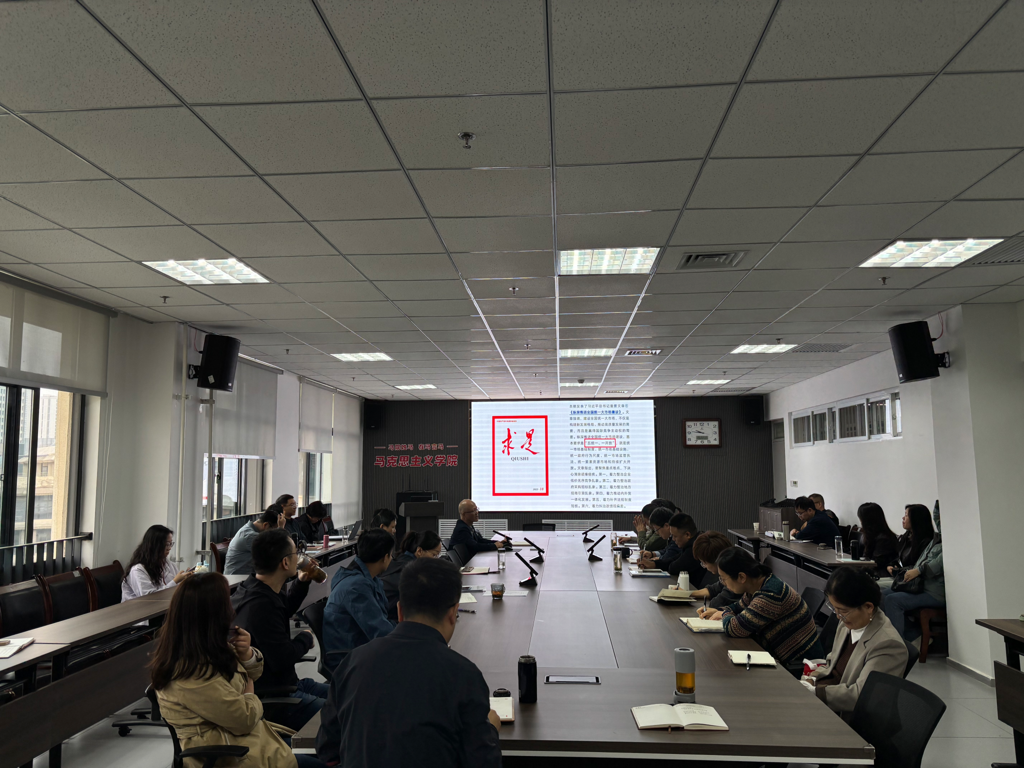 会议学习了发表在今年第18期《求是》杂志上的习近平总书记的重要文章《纵深推进全国统一大市场建设》。文章对建设全国统一大市场的重要意义、“五统一、一开放”的基本要求、聚焦重点难点、进行攻坚战持久战等做出了精辟论述。
