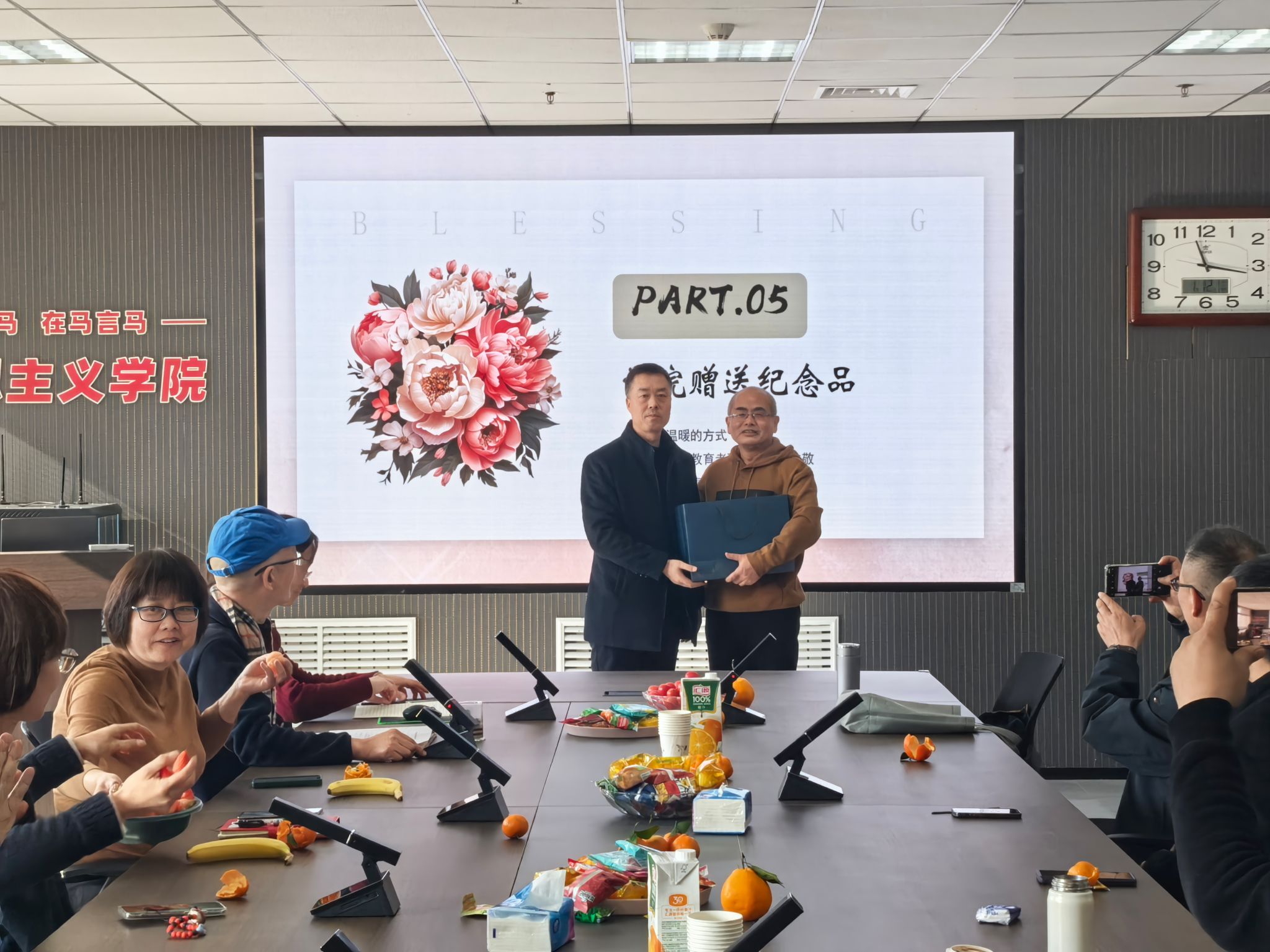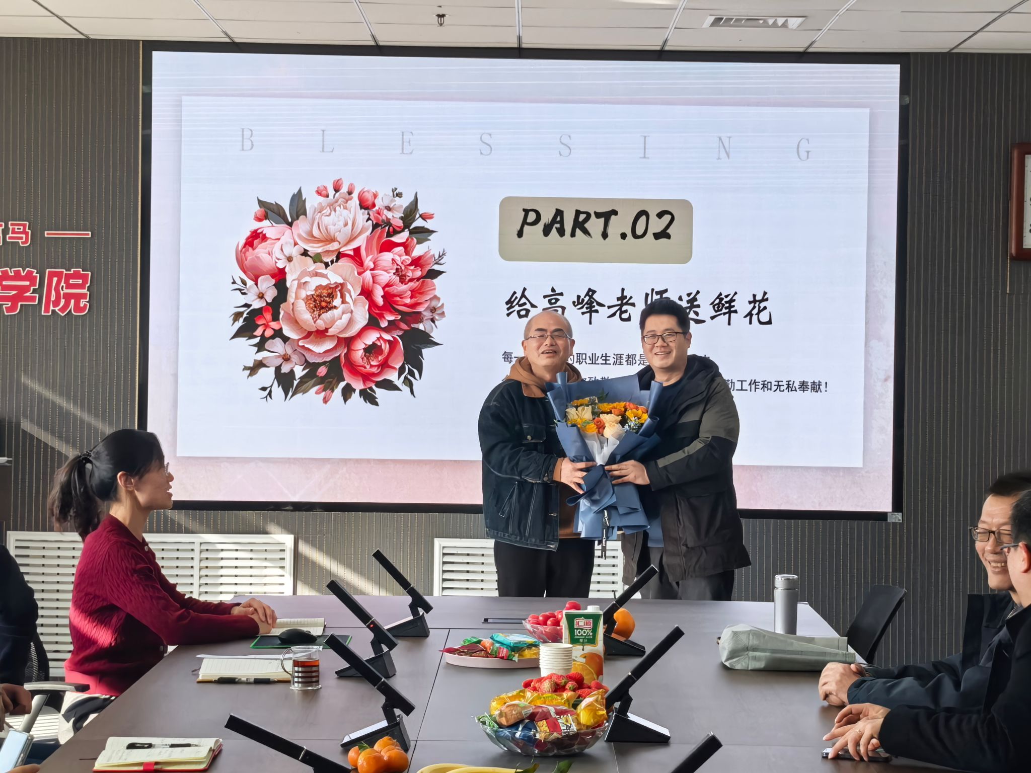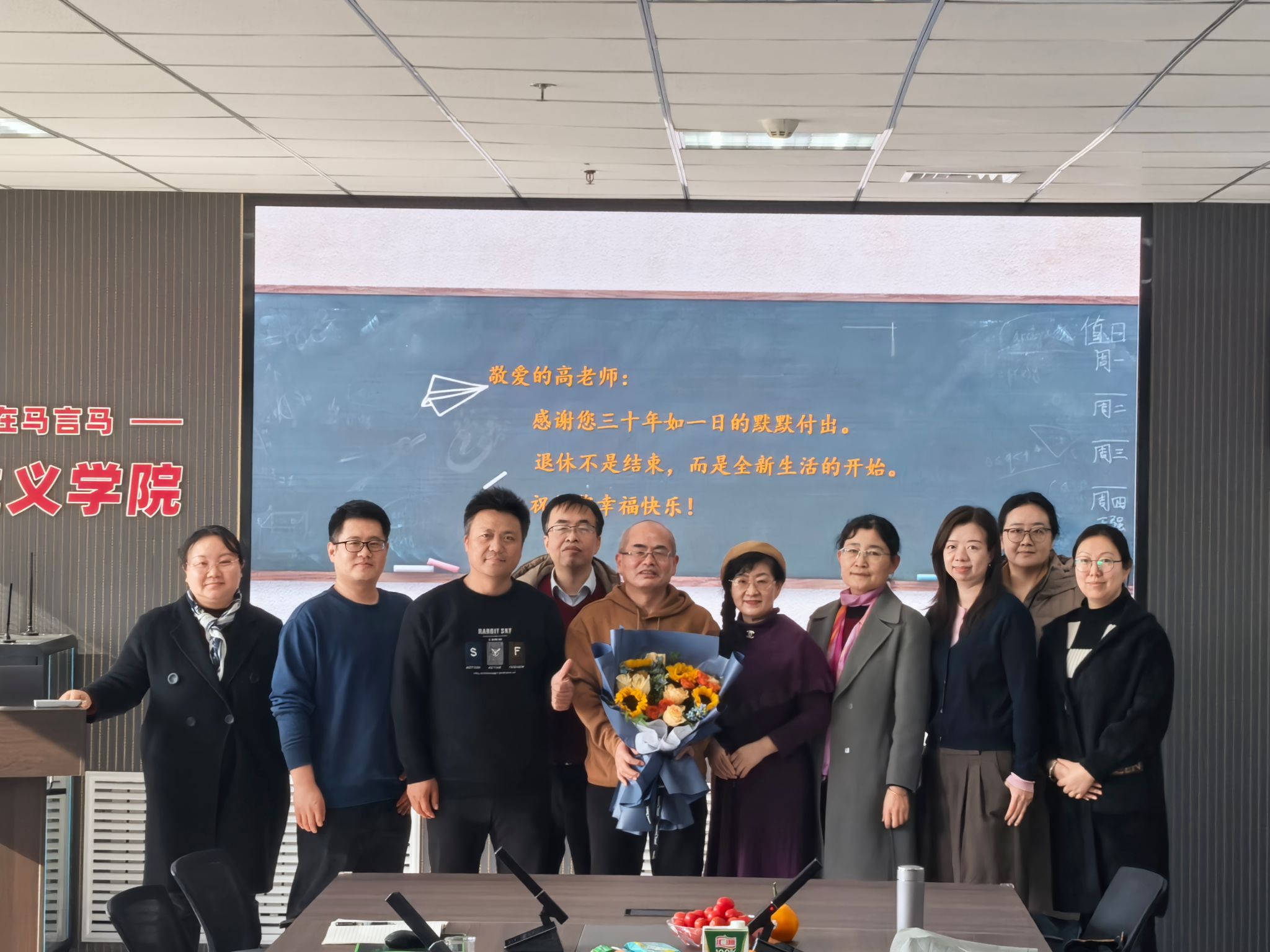 领导和教师代表为高老师敬献鲜花与纪念品,送上最诚挚的问候与祝福。