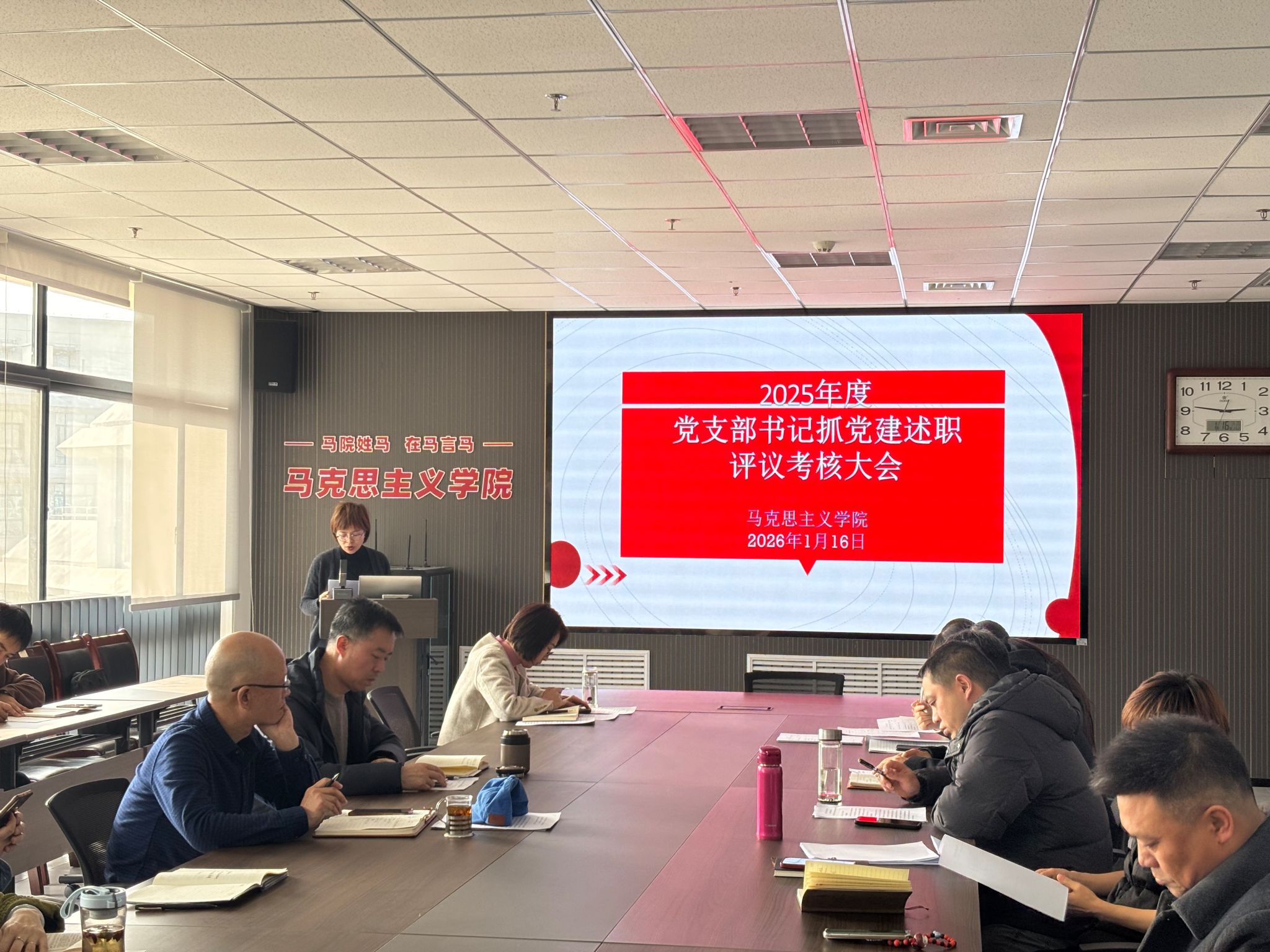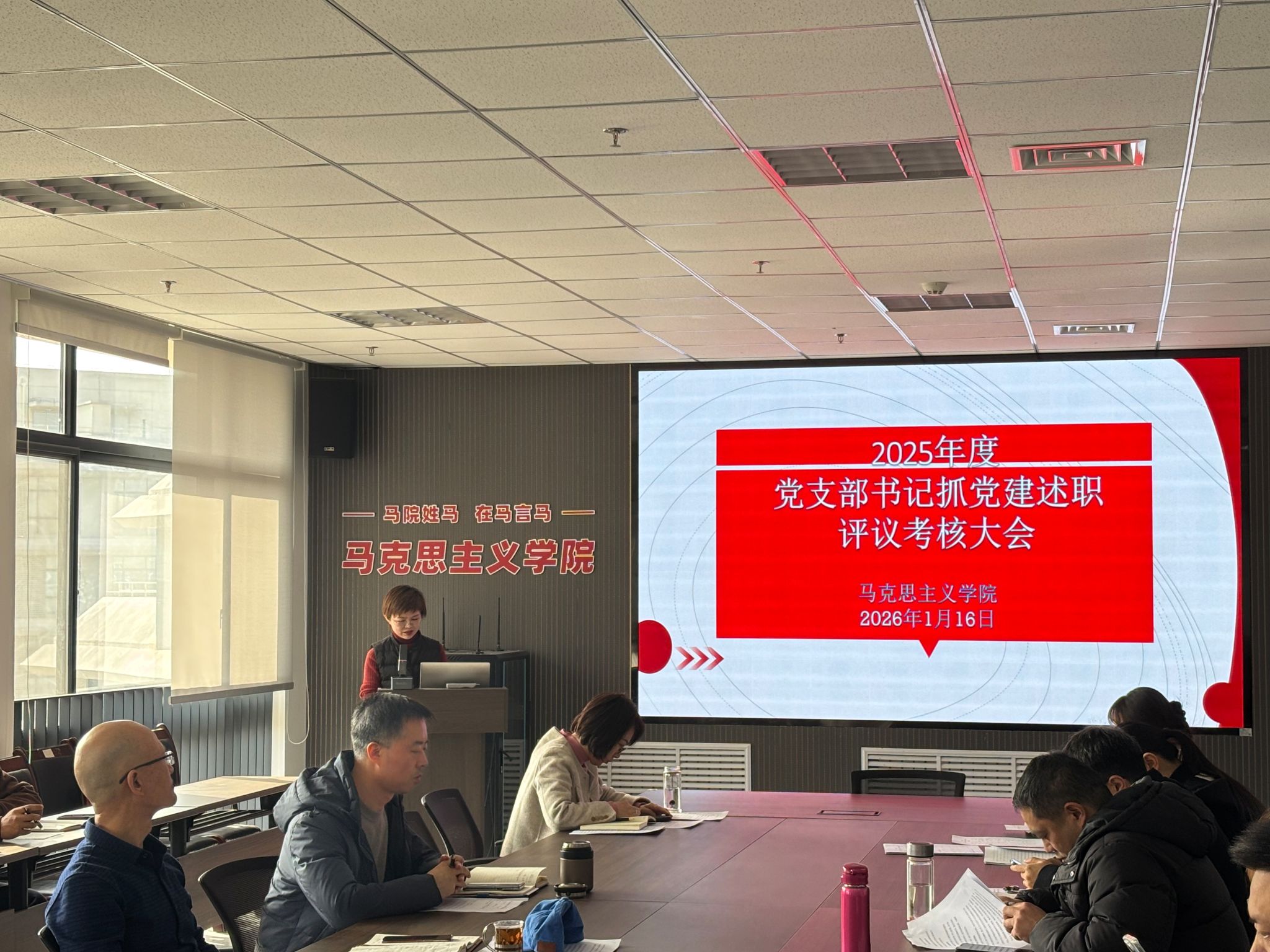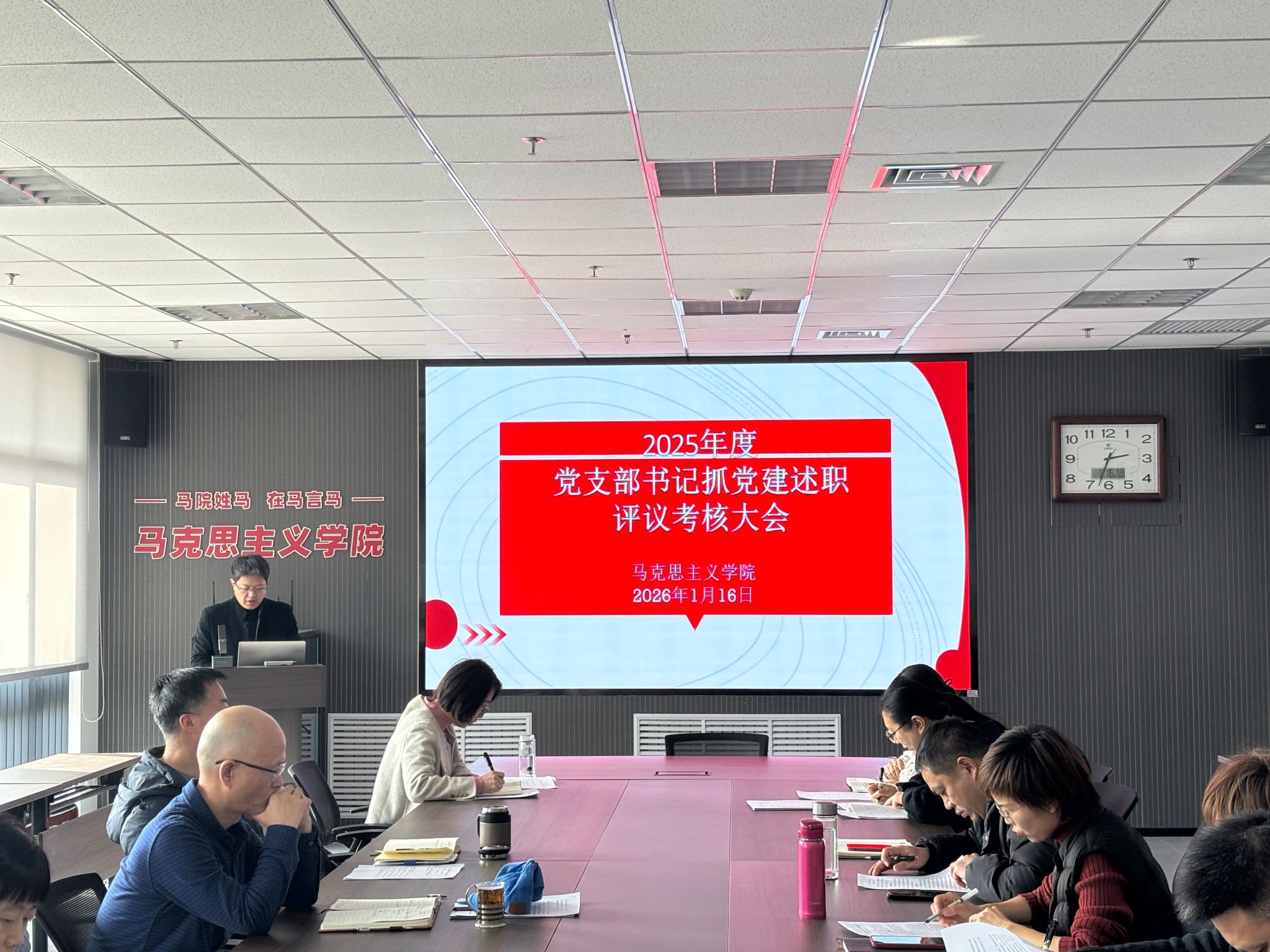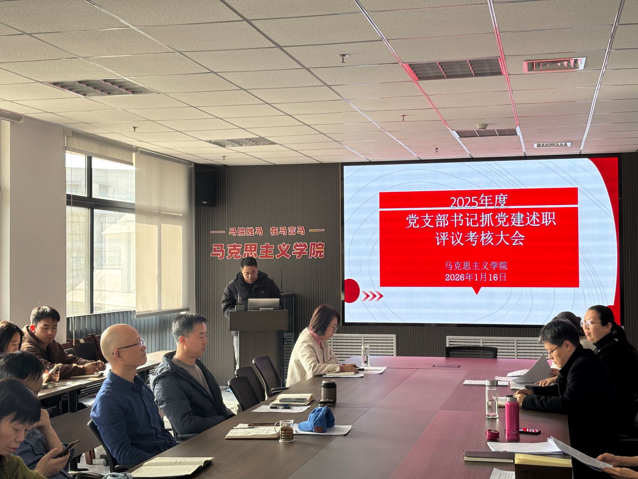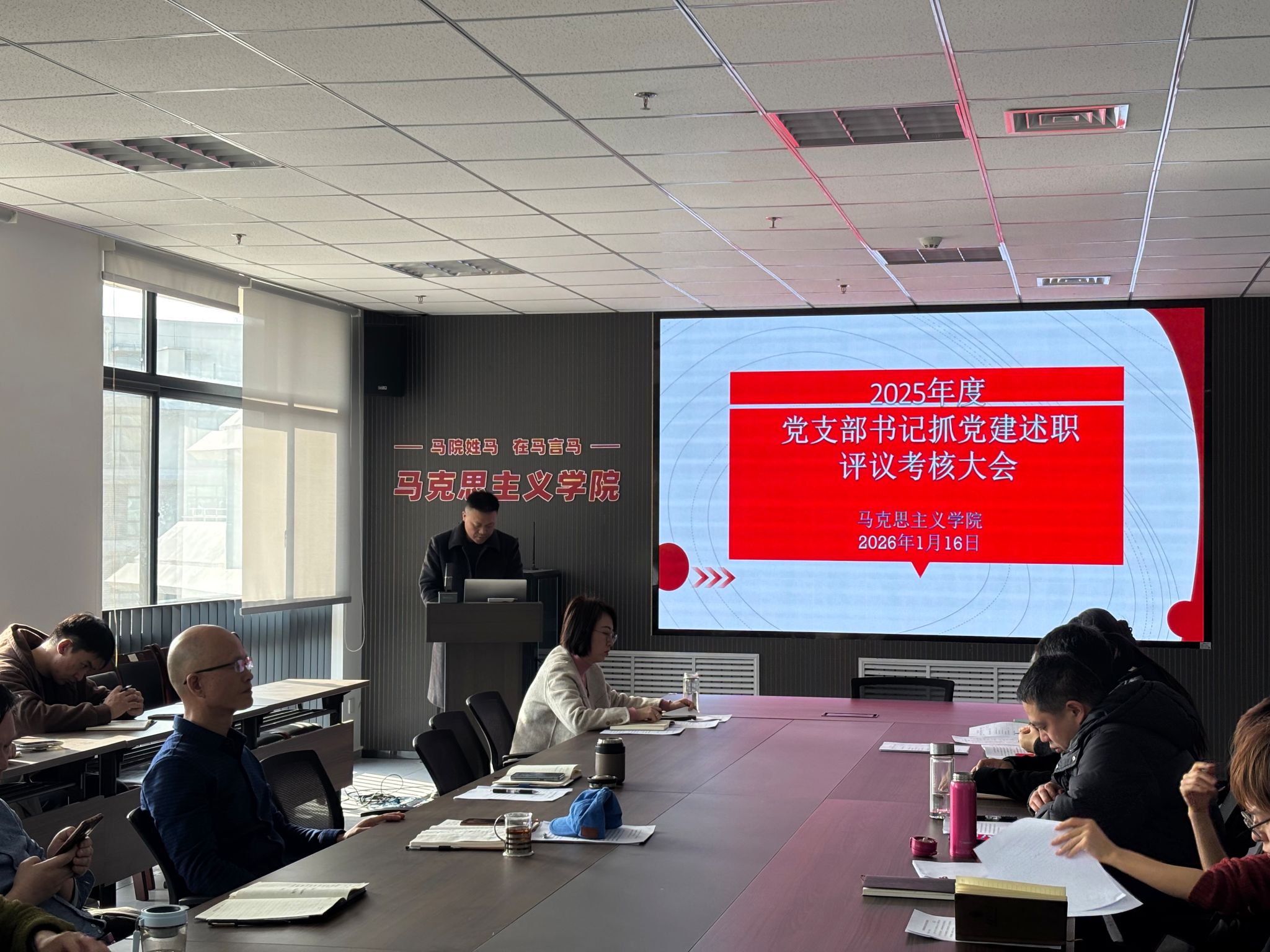 在教七楼514室召开2025年度党支部书记抓党建述职评议考核会。会议由党委副书记程丹主持。