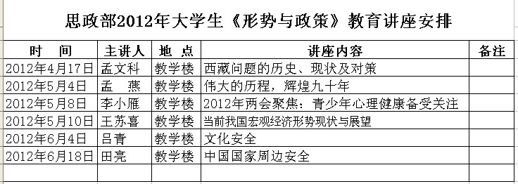 《形势与政策》教育是高等学校学生思想政治教育的重要内容。为贯彻落实《中共中央国务院关于进一步加强和改进大学生思想政治教育的意见》(中发[2004]16号)和《关于进一步加强高等学校学生形势与政策教育的通知》(教社政[2004]13号)及《关于进一步加强和改进高等学校思想政治理论课的意见》(教社政[2005]5号)等文件精神,并按照17直播 关于开展大学生《形势与政策》教育的相关通知要求,不断增强《形势与政策》教育的针对性和实效性,本学期思政部安排时事讲座如下: