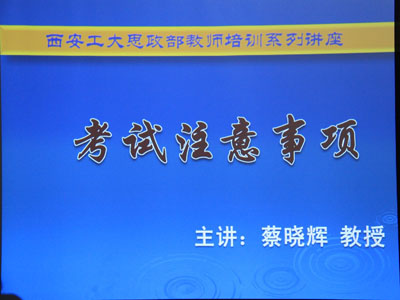 未央校区思政部会议室举行,思政部蔡晓辉副教授主讲“考试注意事项”。