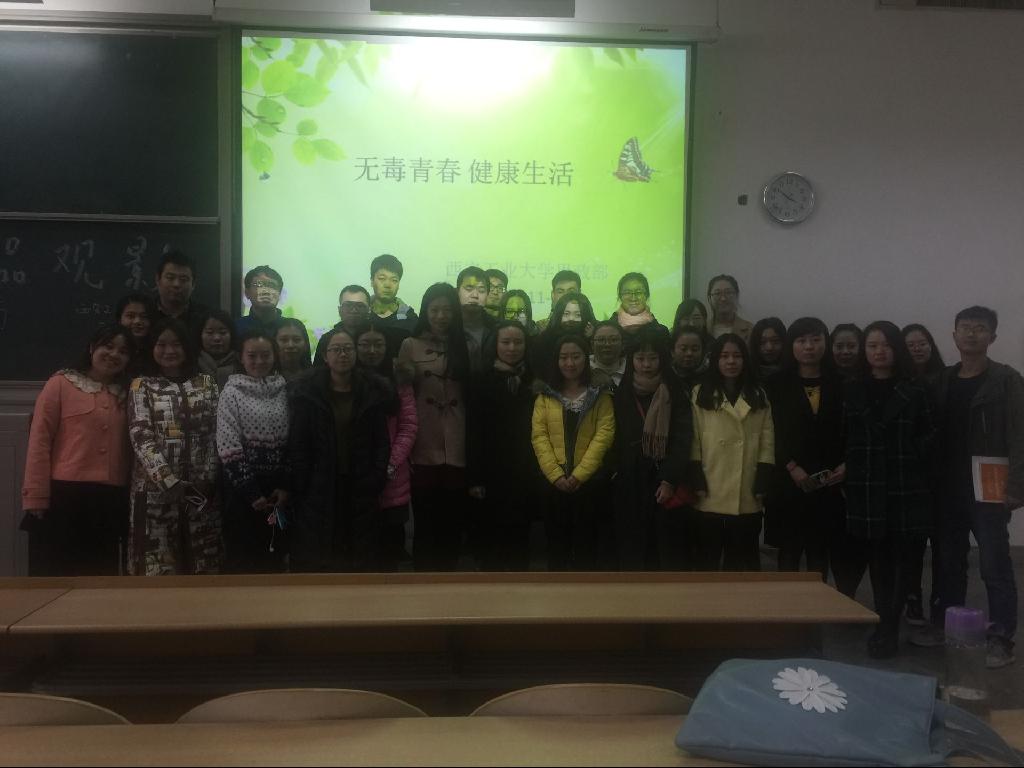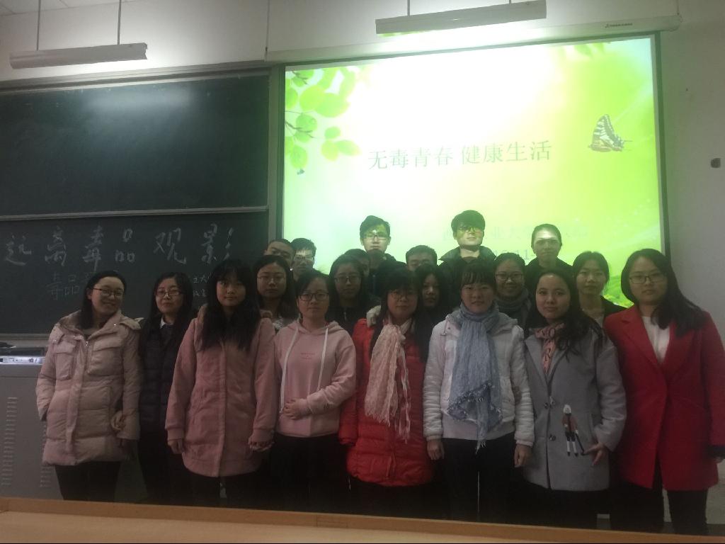 2016年11月25日,为加强青年学生毒品预防教育工作,增强青年学生对毒品的防范意识,切实提高识毒、防毒、拒毒能力,思政部分别组织2015、2016级研究生在教1-404开展了禁毒主题班会,进行了“远离毒品”的观影教育活动。