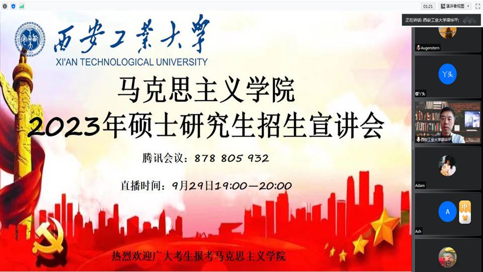 为了进一步帮助学生了解17直播 马克思主义理论学科基本情况,提升学生报考意愿,扩大学科影响力,9月29日,17直播 通过腾讯会议进行了招生宣讲。 副院长梁华平就17直播 马克思主义理论学科的历史沿革、发展规划、学科特色和优势、导师队伍等情况向各位学生做了介绍,并就2023年招生专业方向、招生人数、考试科目、参考书目等情况向学生做了说明。宣讲结束后,就学生关心的问题与各位同学进行了充分交流,就部分学生提出的问题进行了详细解答,助力学生复习备考。