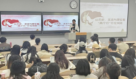 2019年标兵获得者杨丽华老师以“从历史、文本与现实看‘两个行’行在何处”为题进行分享。杨老师首先对‘两个行’的含义进行了讲解,指出第一个行表明党对马克思主义理论的坚持守正,第二个行是党对马克思主义理论的创新发展。其次从历史文本展开,强调马克思主义是历史的选择、人民的选择。再次,从现实出发,强调中国发展过程证明马克思主义是人民的理论、是实践的理论,不仅是理论学说,也是一种现实路径。最后,期许学生加强学习习近平新时代中国特色社会主义思想。