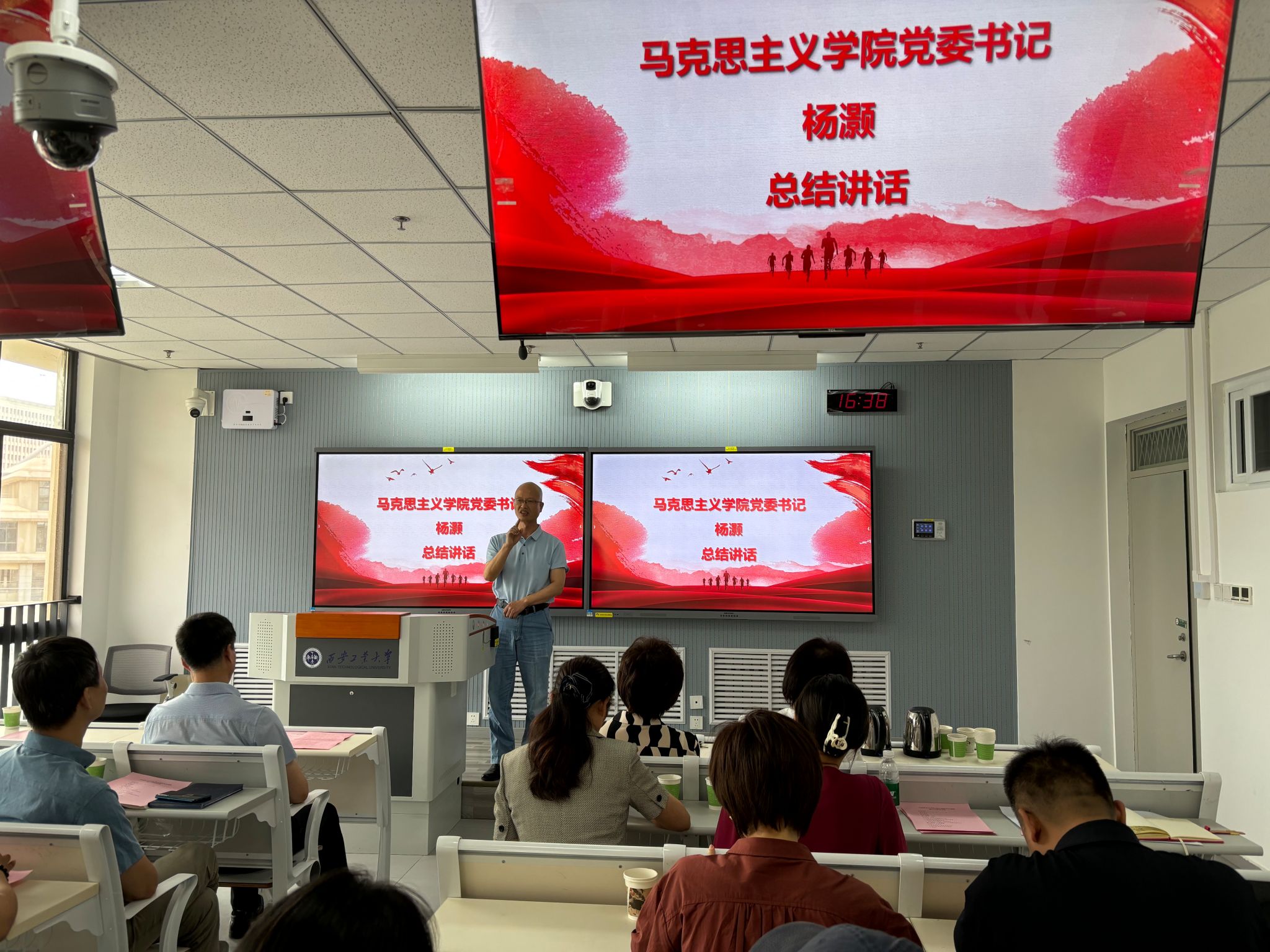 党委书记杨灏最后作总结讲话,鼓励各位同学要立志高远,认真规划学业与职业计划,争取在研究生学习阶段取得更大收获。