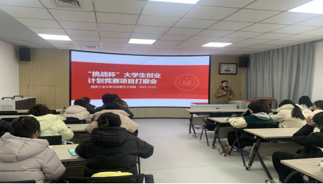 对入围2026年“挑战杯”校赛的6个项目进行打磨。会议邀请了校团委宣传部部长夏开成老师进行专业指导,入围校赛项目队长及成员共同参会,围绕“挑战杯”项目的筹备、优化与突破展开深度研讨。