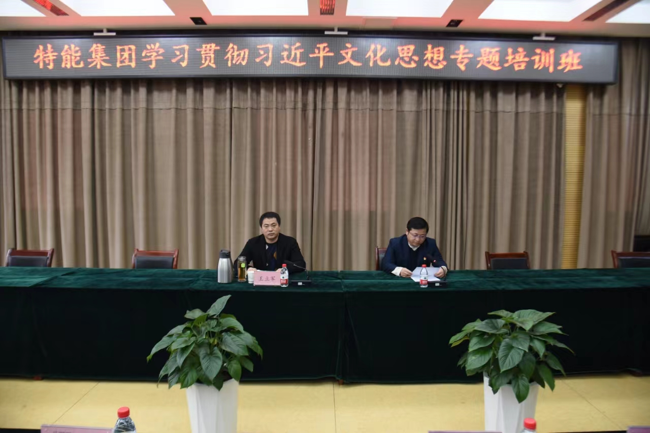 王立军从党的十八大以来宣传思想文化工作事业取得的历史性成就、习近平文化思想的丰富内涵及重大意义,学习习近平文化思想的着力点等四个方面深入解读了习近平文化思想。同时,结合特能集团的具体情况,从五个方面深入分析做好特能集团宣传思想文化工作的逻辑理路及推进路径。王立军强调习近平文化思想是一个不断展开的、开放式的理论体系,需要进行系统、深入的诠释,才能准确全面的把握其思想的魅力,更好地在强国建设、民族复兴中彰显强大伟力和真理力量。