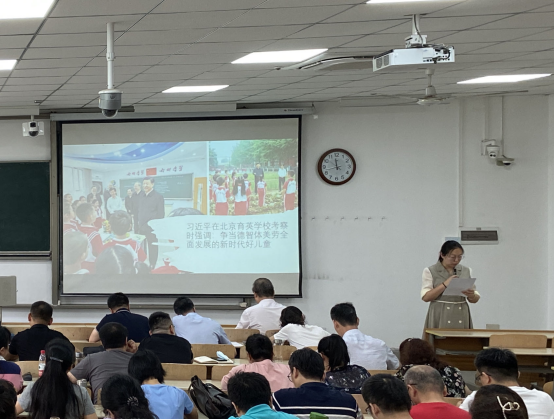 会议学习了《习近平在北京育英学校考察时强调 争当德智体美劳全面发展的新时代好儿童 向全国广大少年儿童祝贺“六一”国际儿童节快乐》。会议指出,“六一”前夕到北京育英学校考察,充分体现了习近平总书记对教育的高度重视和对少年儿童的关心关爱。要认真学习贯彻总书记重要讲话精神,落实立德树人根本任务,在实现德智体美劳全面发展的事业中发挥好思政课的作用。